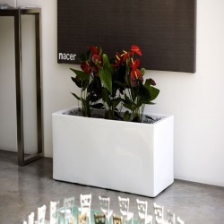 Macetero en resina de polietileno, con pared simple. Se aprovecha todo el interior de la pieza, de este modo se pueden colocar plantas mas grandes. Acabado lacado brillo con pintura para carrocerías. Producto apto solo para exterior.