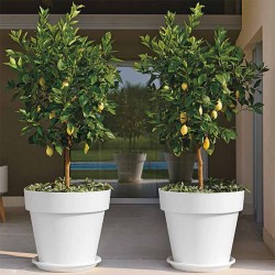 Uso exterior: Las macetas mitu, realizando los agujeros corresponientes se pueden utilizar perfectamente para exterior, tienen como opción los platos en todos los colores y tamaños.
